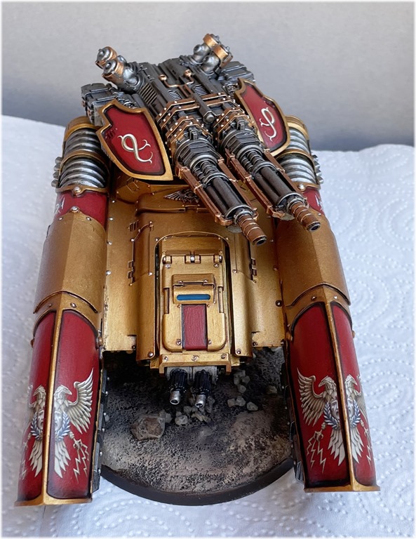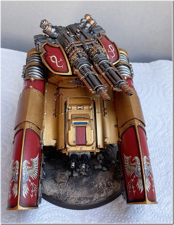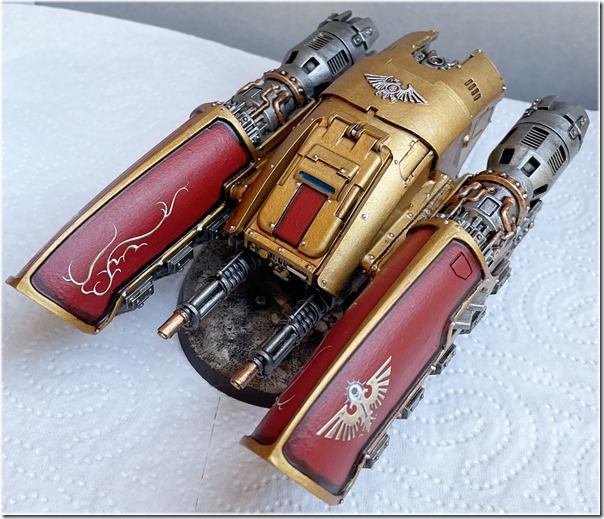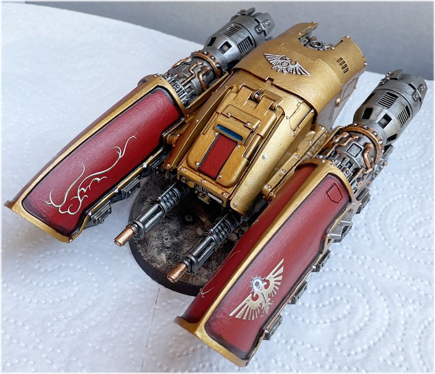 Abweichend habe ich das rechte Shoulderpad in Rot bemalt, weil dort das Khorne-Sysmbol ist.