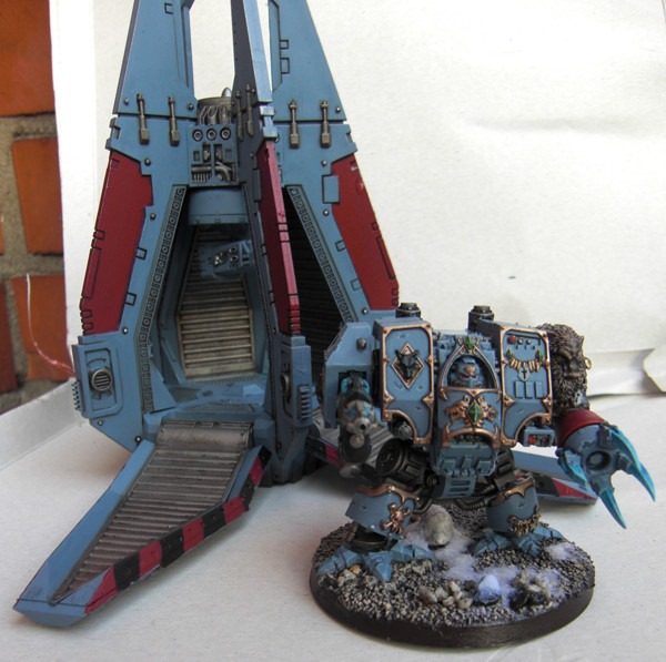 Als nächstes kommen die Wolf-Landungsschiffe und Lukas – äh Loki und der Rune Priest. Da ich jetzt weiß, dass es keine Helfrost-Pistolen gibt, kann ich Krom Dragongaze auch weiterführen und vielleicht noch die ersten 5 echten Wölfe.