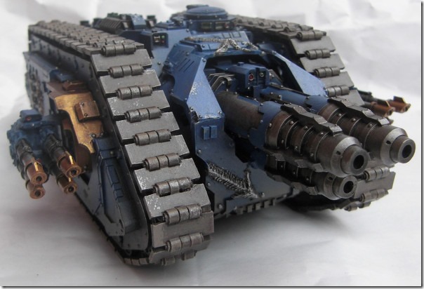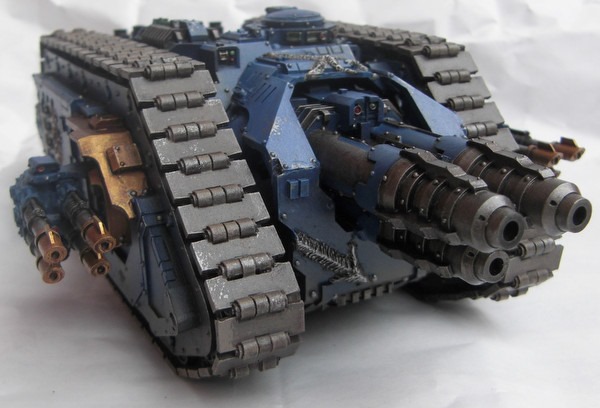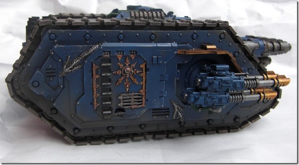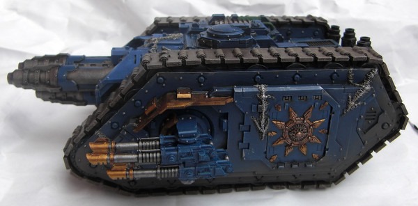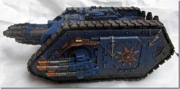 Durch die neuen Kuppeln gleicht der mehr einem Landraider MK2 und wirkt auch wuchtiger (abgesehen davon gefallen mir die original-Seitenkuppeln nicht wirklich). Das Modell zeigt um einiges mehr Gebrauchsspuren als die vorherigen Fahrzeuge.