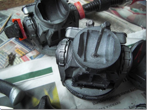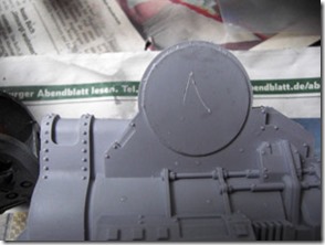Alles wurde mit Lackfarbe eingepinselt und später noch mal per Sprühdose eingesprüht.