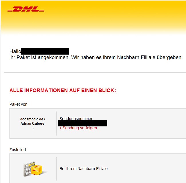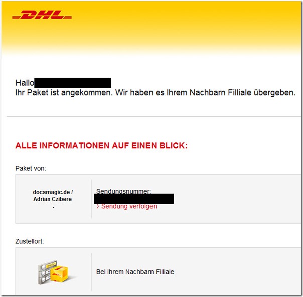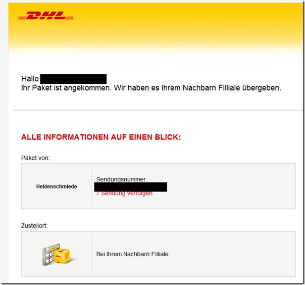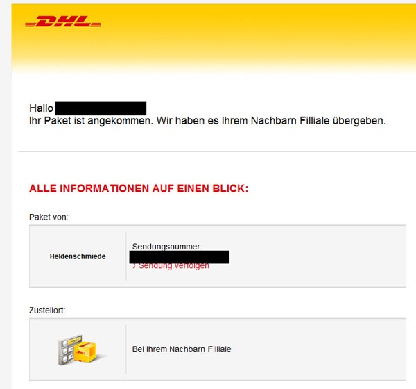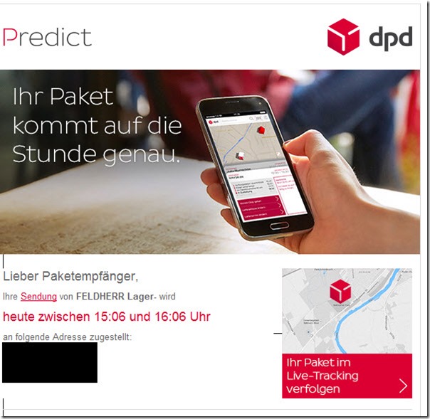 noch auf dem Weg. ‘Hoffe die kommt wenigstens an