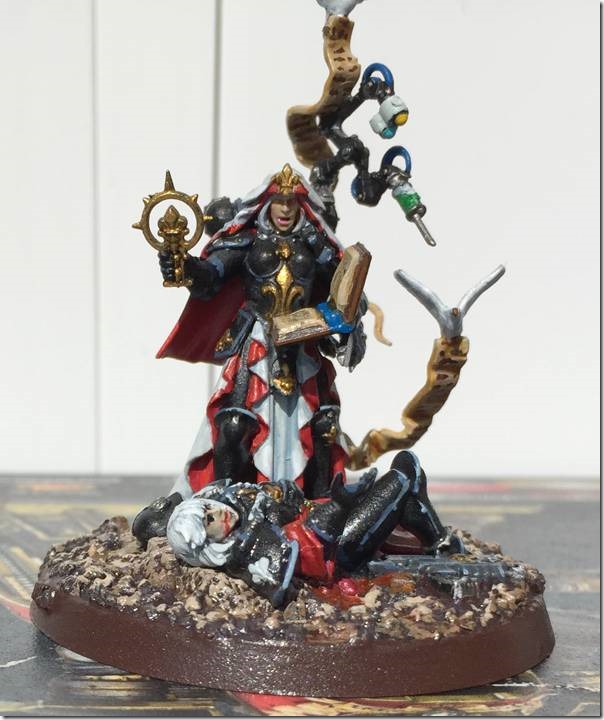 Die Sister Superior mit der Trägerin des Simulacrum Imperialis (vlnr) und Lackfäden (am Bein).