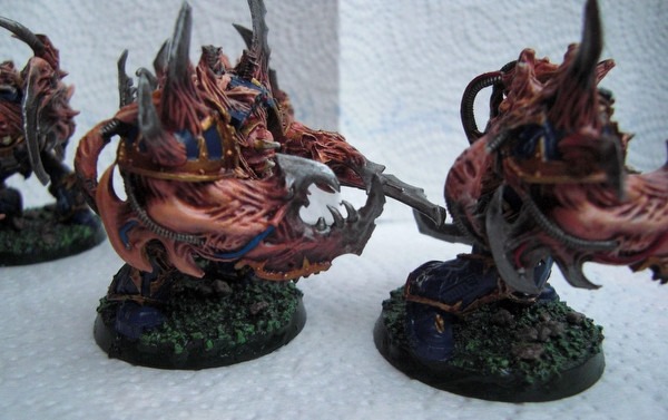 Die Kultisten rufen Slaanesh an und greifen todesmutig den Trupp mit Vulkan He’stan an. Wobei der Champion sich der Aufmerksamkeit seines Gottes würdig erweisen will und Vulkan herausfordert (so ein Dummkopf), der ihn in eine beiläufigen Bewegung umnietet.