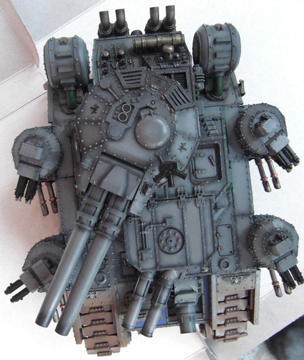 Punkte: 580, Typ: Superschwer, Panzerung: F14, S13, H12, RP 12. Space Marines-Besatzung: BF4,